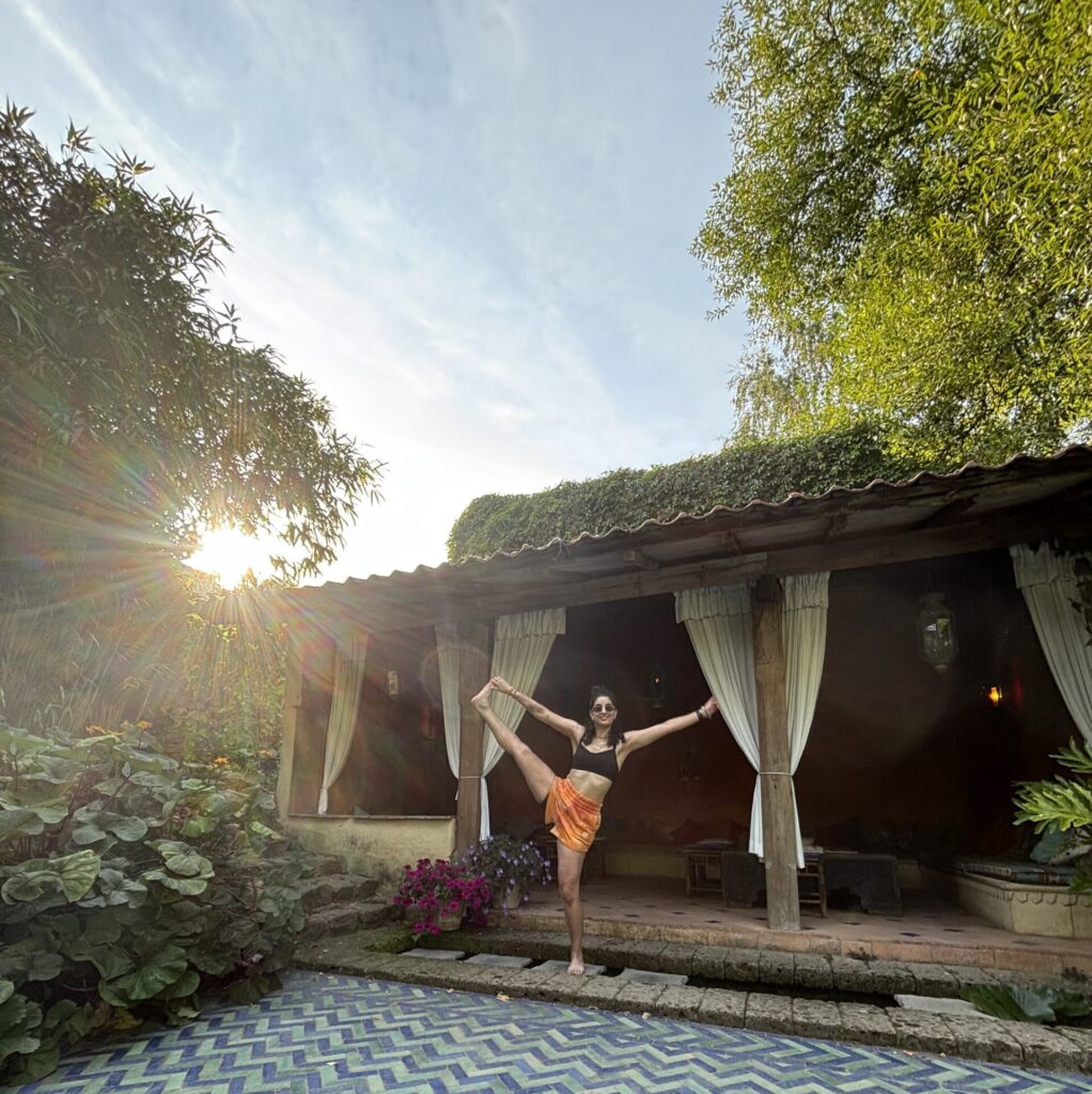 Regelmaat in plaats van af en toe; kies bijvoorbeeld 3 asanas die je prettig vindt om te doen en doe deze elke dag.